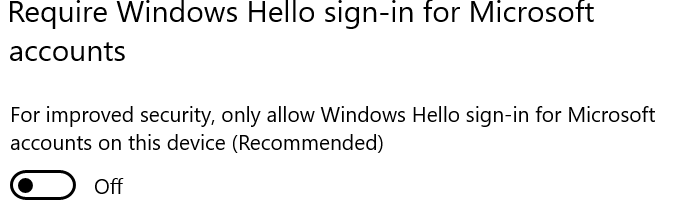 Note: If the checkbox option is not present, the "passwordless" sign-in feature is enabled. You can disable it by navigating to Start > Settings > Accounts > Sign-in options. - Require Windows Hello sign-in for Microsoft accounts
