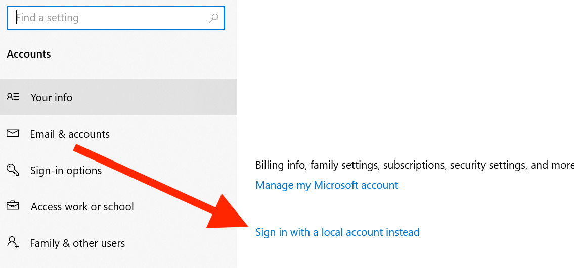 This will remove your Microsoft account and allow a local account to be the default login option. Your Microsoft account will no longer be used to log you in. Instead, your local account will be responsible for that.