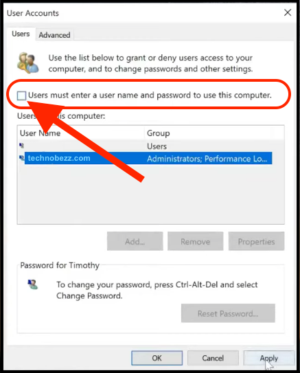Type Netplwiz in the search box on the lower left side of your desktop, just to the right of the Windows Start icon. Only when you type the entire official name will the icon appear that you must click. Afterward, a User Accounts window will appear. Click on the username you want to “unleash” on logging and then uncheck <Users must enter a username and password to use this computer>. After that, restart your computer or log out. In the future, Windows will ignore and skip the login screen and lock screen, i.e., automatically log out after you start the computer or turn off the screen saver.